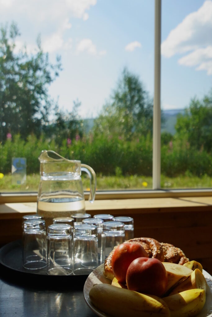Throughout the day, we offer coffee breaks, lunch, and dinner—carefully prepared using local ingredients. If you'd like to end the day with a relaxing moment in our sauna or take a walk in the surrounding nature to clear your mind, we're happy to help arrange it.